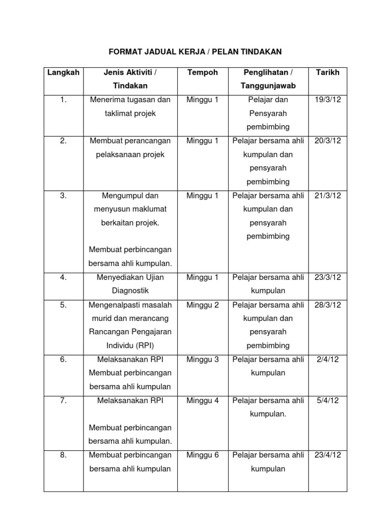 122311301 Contoh Jadual Kerja Langkah Jenis Aktiviti Tempoh Penglibatan Tarikh 1 Menerima Tugasan Studocu